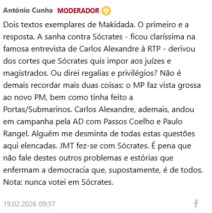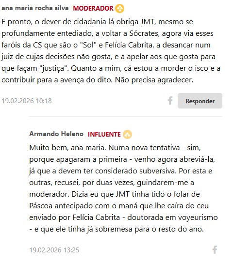 Posso estar enganada e toda esta operação desembocar num belo de um apaziguamento do Médio Oriente, mas, fazendo um flash da situação neste momento, apesar da destruição, nada aponta para um futuro melhor, nem para Israel, nem para o mundo ocidental. O Irão sente-se superior por ter obrigado Trump a “fugir” (deixando-o gritar “vitória”, enquanto se riem). E pior ainda, para mal dos pecados de Israel: o Hamas diz que não desarma e continua a controlar a faixa e, dos países que prometeram juntar-se ao clube, perdão, ao Conselho da Paz para Gaza, apenas três pagaram a joia, pelo que, não tarda nada, desandam e o órgão extingue-se; o Hezbollah recuou e perdeu militantes, mas, com a permanência dos Ayatollahs no Irão, vai sobreviver e continuar a ser a frente avançada do xiismo no Líbano. Para mal do próprio Líbano e da segurança de Israel. Portanto, voltará tudo ao mesmo, em pior, se o Irão mantiver o regime e os seus protagonistas. O curioso é que o objectivo de Israel era bem claro e, desta vez, não era apenas “cortar a relva”. Sem o fim do regime anacrónico do Irão, nada muda em seu redor. Mas, com um parceiro tão desmiolado como Trump, ainda por cima vassalo do Putin, temo que não tenha sido a melhor aposta para conseguir sossego.